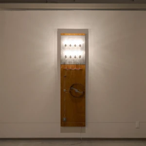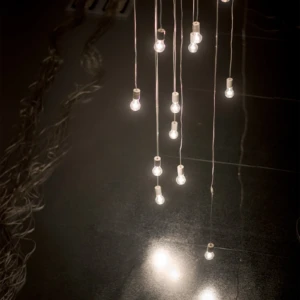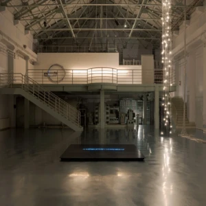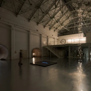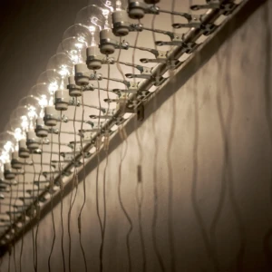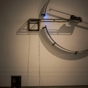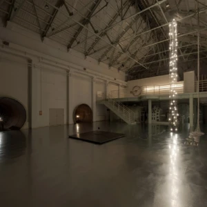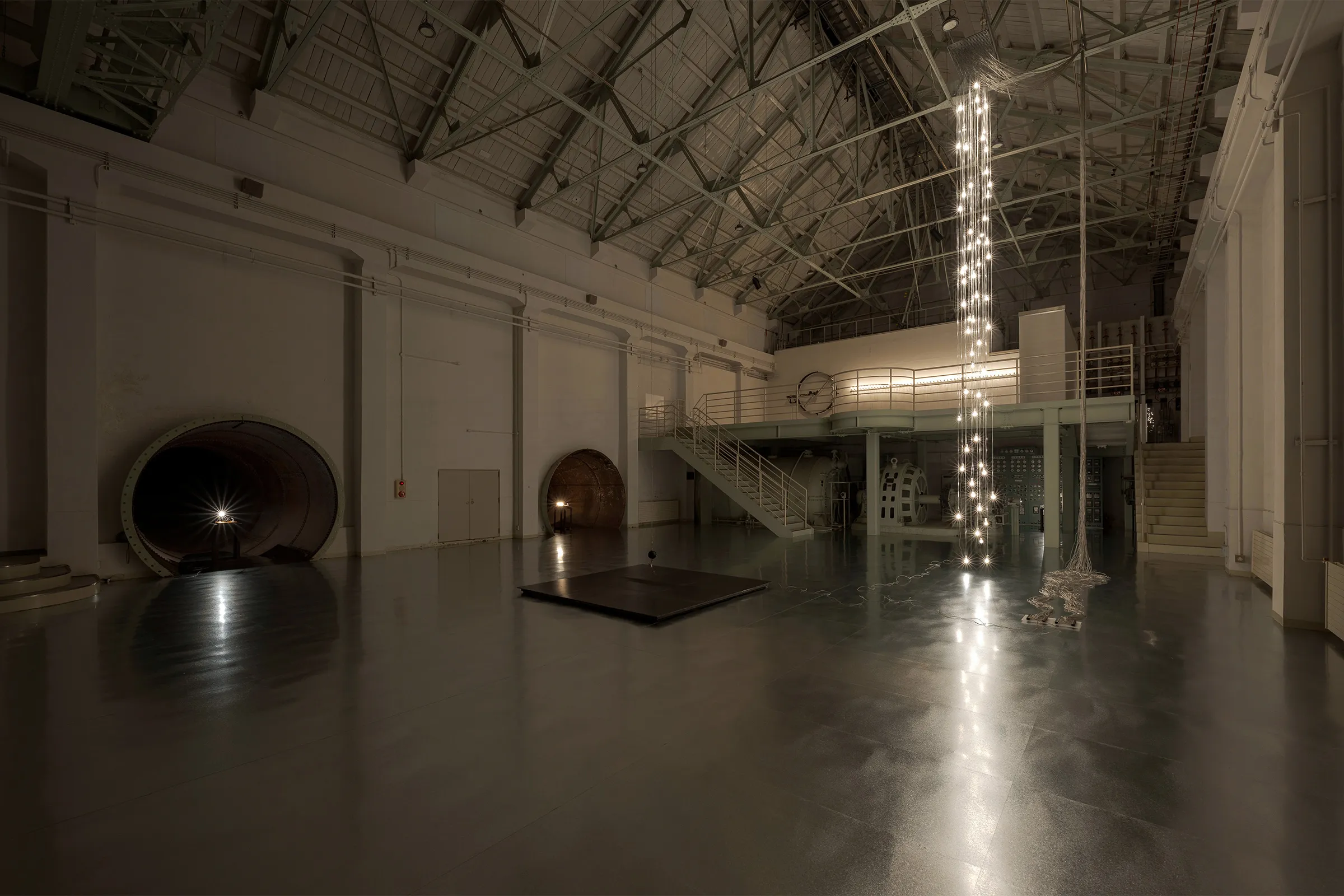 タムラサトル 開放的な接点 発電所にて電力を浪費する 入善町 下山芸術の森 発電所美術館(富山) 2025.10.4 – 2026.3.15 下山芸術の森発電所美術館 撮影:柳原良平 会期 2025年10月4日(土)- 2026年3月15日(日) 在館予定は、インスタで随時お知らせします。 時間 午前9時〜午後5時(入館は午後4時30分まで) 休館日 月曜日(但し、10月13日、11月3日、11月24日、1月12日、2月23日は開館)、10月14日(火曜日)、11月4日(火曜日)、11月25日(火曜日)、12月22日(月曜日)〜1月9日(金曜日)、1月13日(火曜日)、2月12日(木曜日)、2月24日(火曜日) ※念のため、事前に公式ページをご確認の上、ご来場ください。 会場 入善町 下山芸術の森 発電所美術館(富山県下新川郡入善町下山364-1) 観覧料 一般600円、高校・大学生300円、中学生以下無料 ※作品保護・お客様の安全確保のため、状況に応じ入場制限を行います。10名以上でお越しの場合は、複数のグループに分かれてのご入場となる場合(一度にご入場できない場合)がございます。 主催等 主催:公益財団法人入善町文化振興財団 後援:北日本新聞社 協力:TEZUKAYAMA GALLERY、MAKI Gallery 助成:公益財団法人花王芸術・科学財団 [企画・展示内容] このたび入善町下山芸術の森発電所美術館(以下「発電所美術館」)では、開館30周年という記念の年に、栃木県在住の現代美術作家・タムラサトルの個展を開催いたします。 1972年栃木県生まれ、95年筑波大学芸術専門学群総合造形卒業のタムラサトルは、まわるワニや後退するクマ、チェーンや歯車で構成された動き続ける文字や図形といった機械仕掛けの作品や、白熱電球を使ったインスタレーションなどを国内外で発表してきました。回転や移動といった物理的動作とそれに伴う電気的接点のON/OFFを巧みに組み合わせ、目的もなく動き続ける作品は、機械や道具が持つ本来の意味や機能という固定概念から開放されたユーモアを感じさせ、また一方でどこかシニカルな印象を与えてきました。 今回タムラは、元水力発電所である発電所美術館で、これまで展開してきた白熱電球を使用したシリーズの最新作を現地制作で発表します。天井から垂らされた電源ケーブルが振り子のように揺れ、床に敷き詰められた鉄板と接触、火花を散らしながら通電しケーブルの先の白熱電球が点滅する会場全体を使ったインスタレーションは、現代社会で不可欠でありながら普段意識することの少ない電気そのものの存在を強烈に印象付けることでしょう。ダイナミックな光と影の変化と激しいスパークの音で満たされる空間にご期待ください。 (タムラサトル展/入善町より) モータで動く作品を制作することが多い。その制作過程では、トライアンドエラーで動作チェックを何度も繰り返す。テストランをする時には、まだ作品の構造が完璧ではないため、スイッチの代わりにプラグをコンセントに抜き差しすることもある。たまたま、暗所でテストランをすることがあり、プラグをコンセントに入れた。安全性の面から徐々に減ってきているようではあるが、日本のコンセントの穴には蓋がないことが多い。その瞬間、穴から青白いスパークが見えた。通電が可視化され、「いま電気が流れた」と、はっと息を呑んだ。またあのスパークが見たい。この感覚を作品化していこうと考えた。 日本では通常AC100V~200Vが流れ、電化製品を動かしている。あらゆるところに電気回路が張り巡らされているのだ。見方によっては危険だが、それが安全にしっかり制御されていることに驚く。様々な形のスイッチでコントロールされている。本来、そのような電気回路をON/OFFするスイッチは、小さく閉鎖的で耐久性があり安全性が保たれている。そのスイッチの構造を、あえて開放的で大袈裟な仕組みにしてみたらどうだろうか。そうして、この《接点》は始まった。水力発電所をリノベーションしたこの美術館で、電力を浪費する《接点》を設置することは皮肉であり滑稽だ。が、造形的には完全にはまっている。 PDF(3.5MB) 展示風景 関連作品 2018.11.16 白熱灯のための接点 Point of Contact for Incandescent lamps path-connected まえばしガレリア Gallery 2(群馬) 2024.6.29 – 8.4 無目的な機械 AIMLESS… 2025.02.09 接点 90の白熱灯のための接点 Point of Contact for 90 Incandescent Lamps 2023 182.0 x 55.0 x 12.0 13の白熱灯のための接点 Point of Contact fo… 2016.11.12 50の白熱灯のための接点 50の白熱灯のための接点 #9 Point of Contact for 50 Incandescent Lamps #9 2016, incandescent lamps, motor, wood, steel, cables, … 2017.10.22 Point of Contact for Unna 2017, Incandescent lamps, aluminum, steel, codes, motors…etc, variable size 「INTERNATIONAL LIGHT ART AWARD 2017」First… 関連作品 レイという青いワニはまわるのに60秒かかる ジョージという白いワニはまわるのに30... 最近の展覧会展覧会一覧 レイという青いワニはまわるのに60秒かかる ジョージという白いワニはまわるのに30秒かかる ぐるぐるまわってみる 前橋マシーン HELLO, YES & NO マシーン 第10回「10×15の世界コンテスト」特別展示 ART TAIPEI 2024